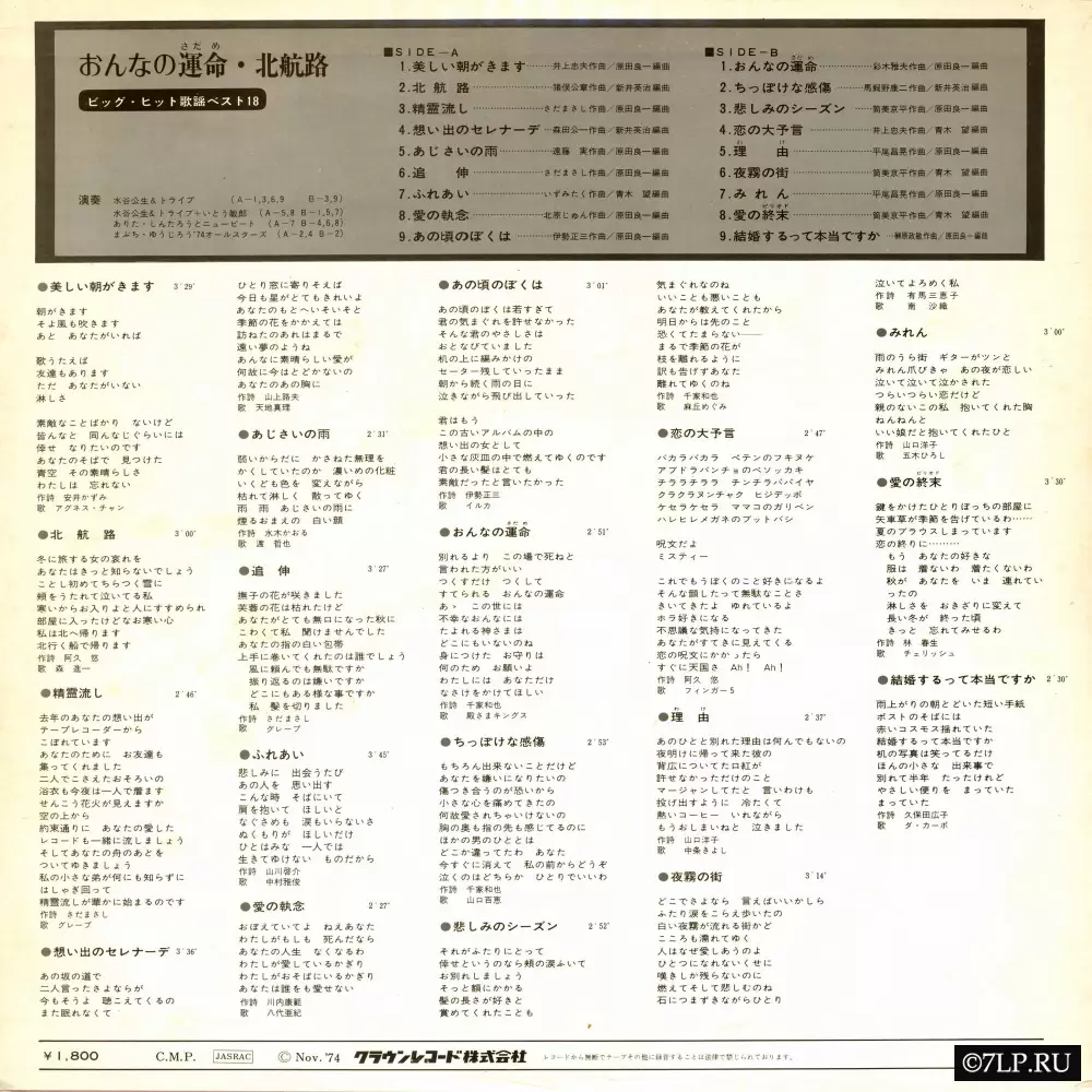 Полное японское название этого издания — «おんなの運命・北航路 (ビッグ・ヒット歌謡ベスト18)», что читается как Onna no Sadame / Kita Koro — Big Hit Melodies Best 18 и переводится как «Женская судьба / Северный морской путь». Альбом назван в честь заглавных хитов конца 1974 года.