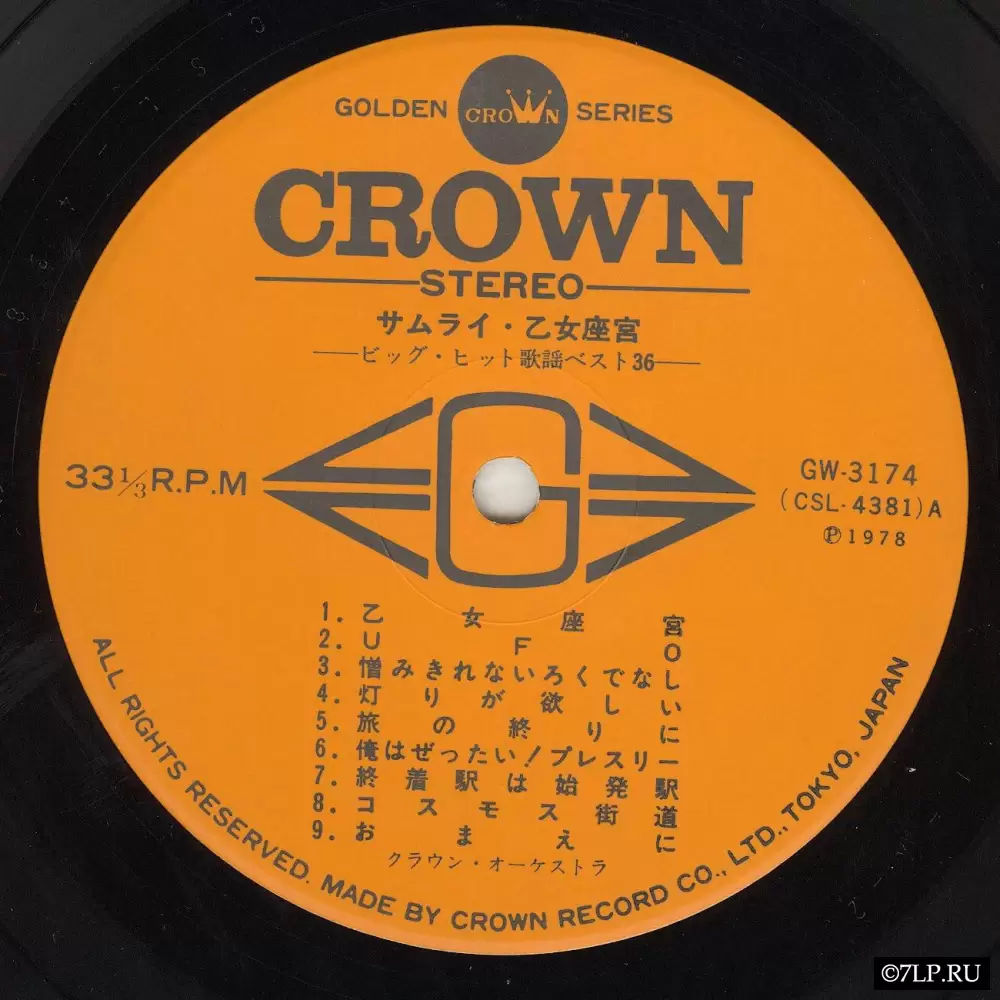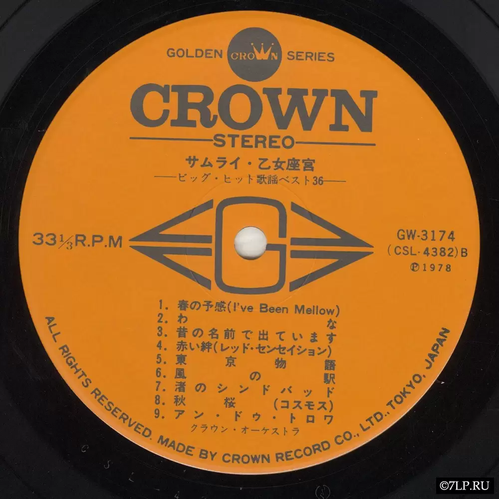 Перед нами прекрасный образец японской музыкальной индустрии конца 1970-х годов. Это двойной альбом (2LP), выпущенный токийским лейблом Crown Record Co., Ltd. в 1978 году. Релиз является частью престижной линейки «Golden Crown Series». Каталожные номера пластинок: GW-3173 и GW-3174.