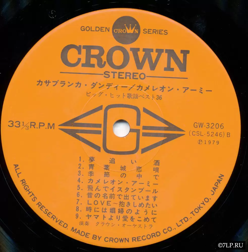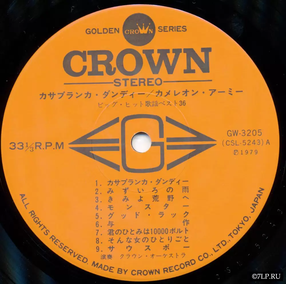 Перед нами классический пример японского инструментального релиза конца 1970-х годов. Этот двойной виниловый альбом (2LP) был выпущен токийским лейблом Crown Record Co., Ltd. в 1979 году. Он является частью популярной серии «Golden Crown Series». Каталожные номера пластинок: GW-3205 и GW-3206.