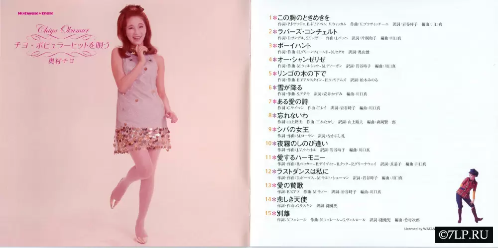 Тиё Окумура (Chiyo Okumura) — невероятно популярная японская эстрадная певица, чей пик славы пришелся на конец 1960-х и 1970-е годы. Она дебютировала в 1965 году и быстро стала одной из главных звезд жанра «каёкёку» (японская поп-музыка эпохи Сёва). Тиё прославилась своим чувственным, слегка сладковатым и кокетливым вокалом («амаэ-гоэ»). Ее главным хитом, закрепившим за ней статус суперзвезды, стала песня «Koi no Dorei» (Раба любви) 1969 года. Помимо оригинальных песен, она превосходно исполняла кавер-версии западных хитов, адаптируя их под японского слушателя.