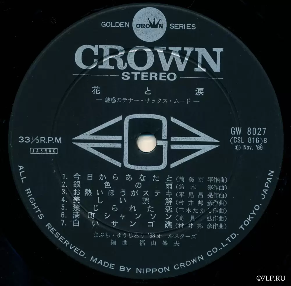 Альбом «Hana to Namida» (яп. 花と涙 — «Цветы и слезы») с подзаголовком «The Best Hits 28 Tenor Sax Mood» — это роскошное двухвиниловое издание (2LP) в жанре Mood Kayo (музыка для настроения), выпущенное лейблом Nippon Crown в ноябре 1969 года (копирайт Nov. '69 на яблоках). Релиз вышел в рамках престижной серии «Golden Crown Series» и имеет сдвоенный каталожный номер GW-8027 / GW-8028.
