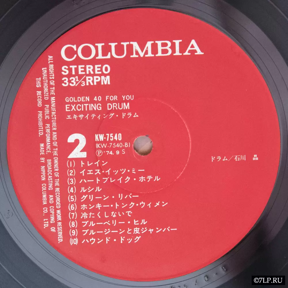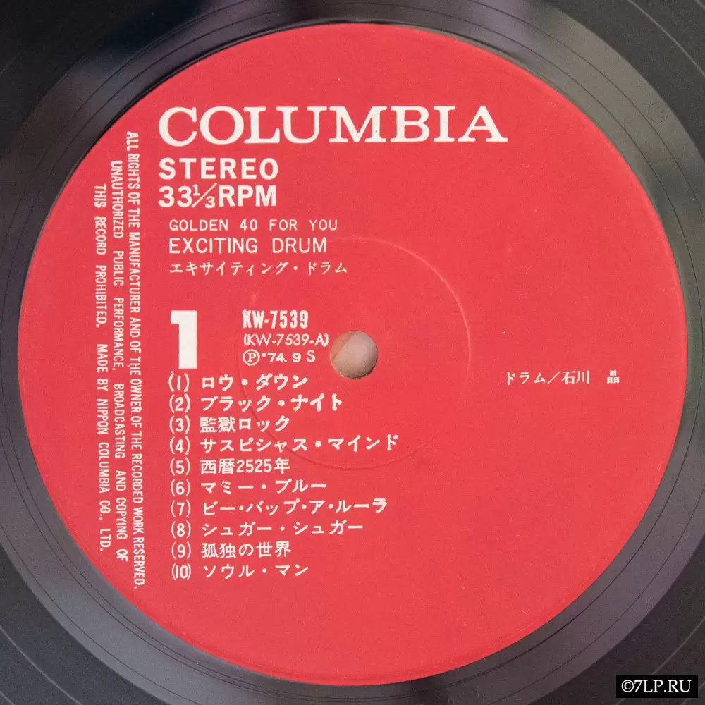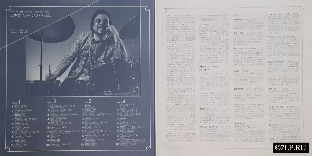 Перед нами двойной виниловый альбом-компиляция «Exciting Drum» (Эпичные барабаны), выпущенный в рамках серии лейбла Nippon Columbia «Golden 40 for you». Концепция серии заключалась во вмещении 40 популярных композиций на двух пластинках, где главным солирующим инструментом выступали барабаны.