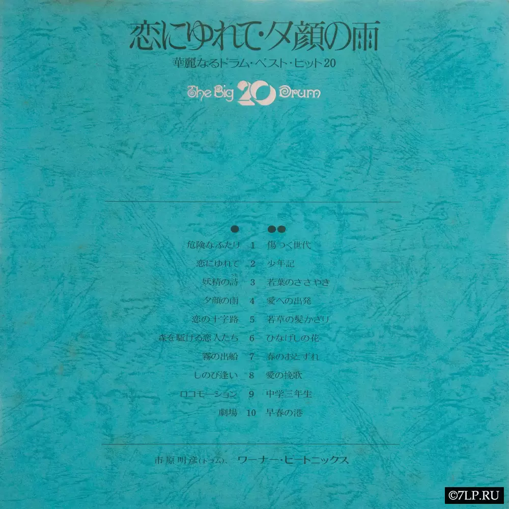 - Оригинальное название: 恋にゆれて・夕顔の雨 / 華麗なるドラム・ベスト・ヒット 20 (Слезы любви・Дождь луноцвета / Великолепные барабаны — 20 лучших хитов).