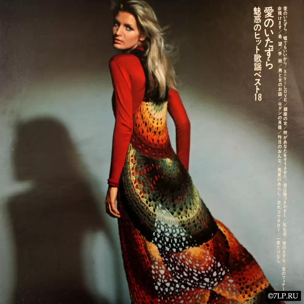 Визуальное оформление (Cover Art): Оформление конверта глубоко типично для японских сборников популярной музыки (особенно инструментальной) конца 1960-х — начала 1970-х годов. На лицевой стороне изображена привлекательная белокурая модель европейской внешности в стильном белом костюме с цветочной вышивкой на черном фоне. На задней стороне конверта та же модель позирует в профиль в ярком длинном вязаном платье (кроше) поверх красной водолазки. Использование фотографий европейских моделей для обложек сугубо японской музыки было мощным маркетинговым трендом того времени, привлекавшим внимание покупателей в магазинах.