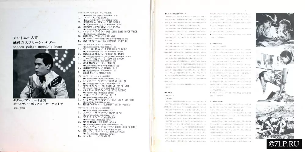 - Антонио Кога (Antonio Koga, наст. имя Масао Оути): Выдающийся японский гитарист и певец. Он обучался у легендарного японского композитора Масао Коги (взяв его фамилию в качестве псевдонима). Антонио Кога славится своей виртуозной техникой игры на классической (акустической) гитаре с сильным уклоном в латиноамериканские стили. В этом альбоме он солирует, придавая заезженным кинотемам очень тонкое, романтичное и слегка испанское звучание.