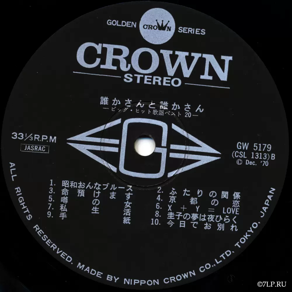 Перед нами яркий представитель японской виниловой индустрии рубежа 1960-х и 1970-х годов. Это пластинка из той же популярной серии лейбла Crown Records, что и предыдущий релиз (GW-5170), но с еще более интригующим оформлением и расширенным трек-листом.