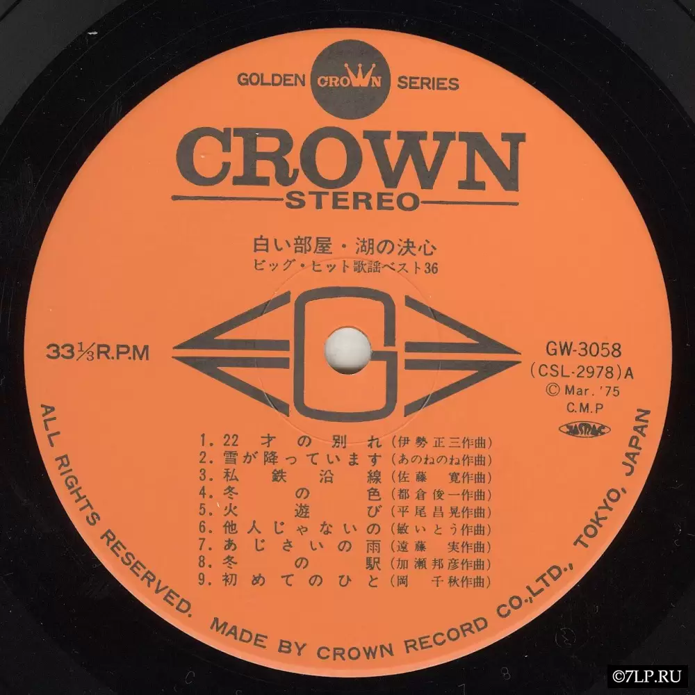 Альбом «白い部屋・湖の決心 — ビッグ・ヒット歌謡ベスト36» (Shiroi Heya / Mizuumi no Kesshin — Big Hit Melodies Best 36) — это двойной виниловый сборник (2LP), выпущенный в марте 1975 года японским лейблом Nippon Crown в рамках серии «Golden Crown Series». Каталожные номера дисков: GW-3057 и GW-3058.