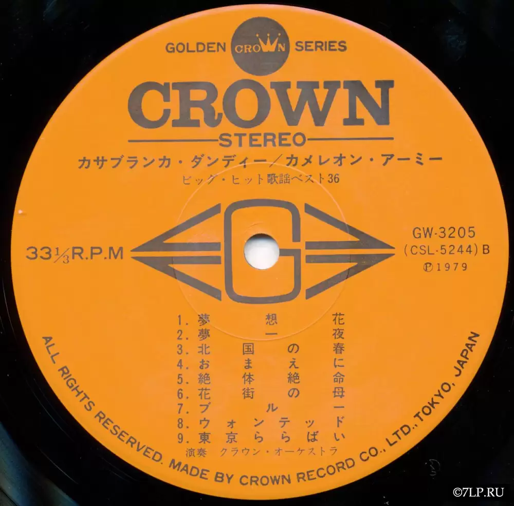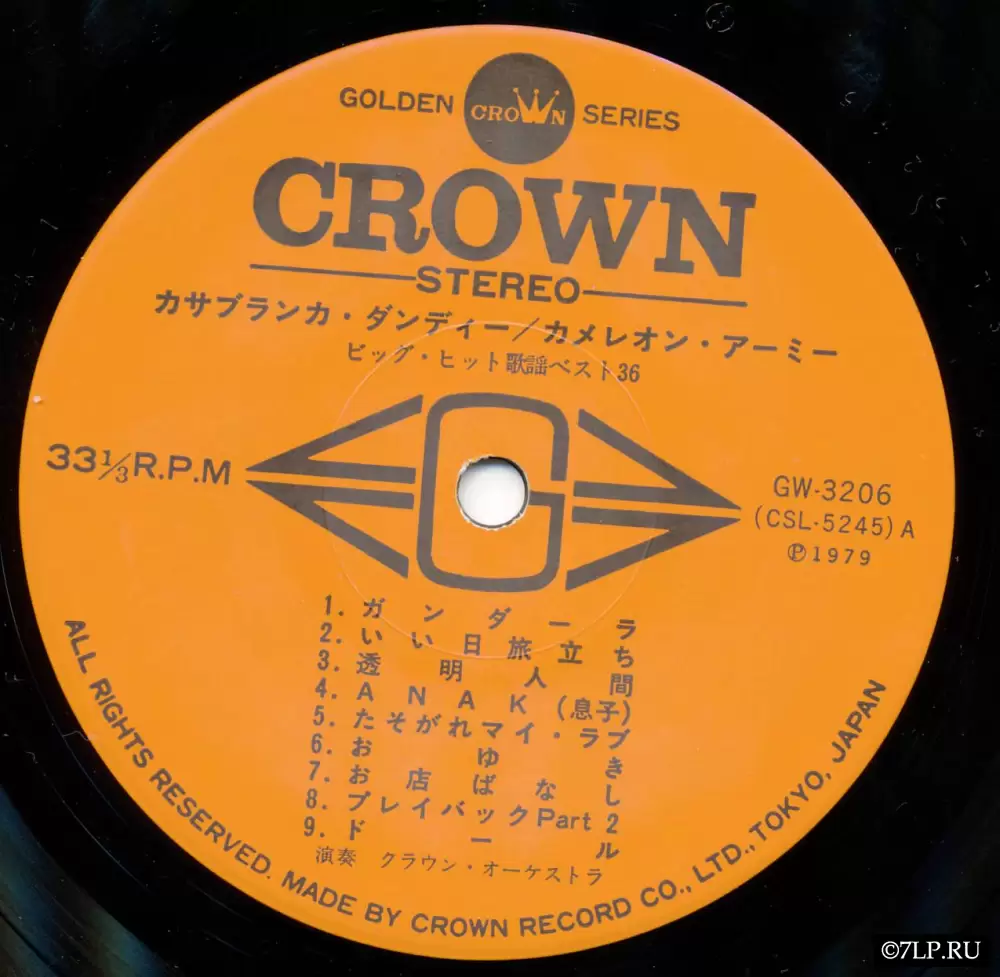 Перед нами классический пример японского инструментального релиза конца 1970-х годов. Этот двойной виниловый альбом (2LP) был выпущен токийским лейблом Crown Record Co., Ltd. в 1979 году. Он является частью популярной серии «Golden Crown Series». Каталожные номера пластинок: GW-3205 и GW-3206.