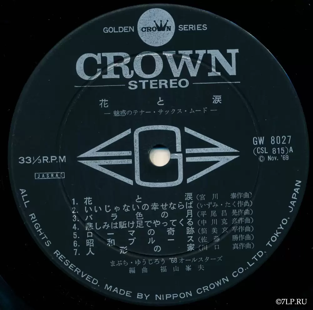 Альбом «Hana to Namida» (яп. 花と涙 — «Цветы и слезы») с подзаголовком «The Best Hits 28 Tenor Sax Mood» — это роскошное двухвиниловое издание (2LP) в жанре Mood Kayo (музыка для настроения), выпущенное лейблом Nippon Crown в ноябре 1969 года (копирайт Nov. '69 на яблоках). Релиз вышел в рамках престижной серии «Golden Crown Series» и имеет сдвоенный каталожный номер GW-8027 / GW-8028.