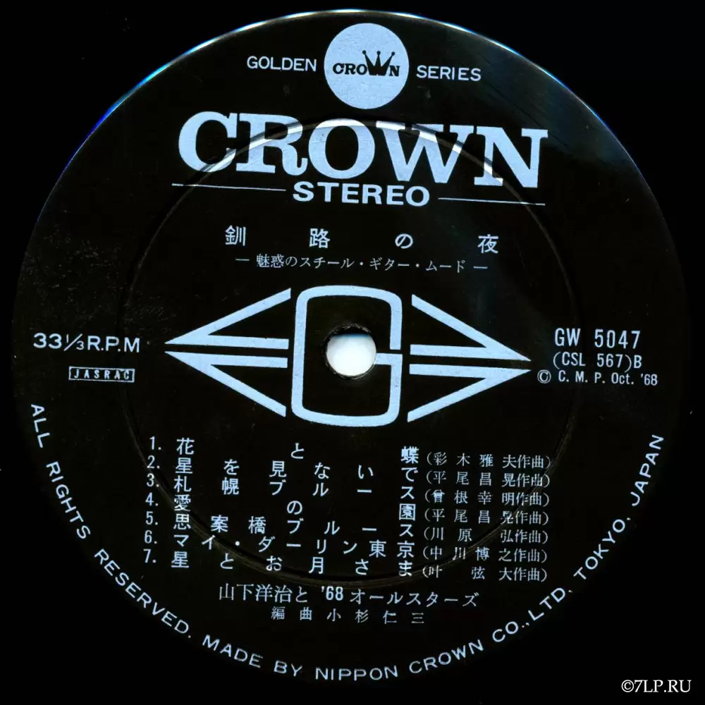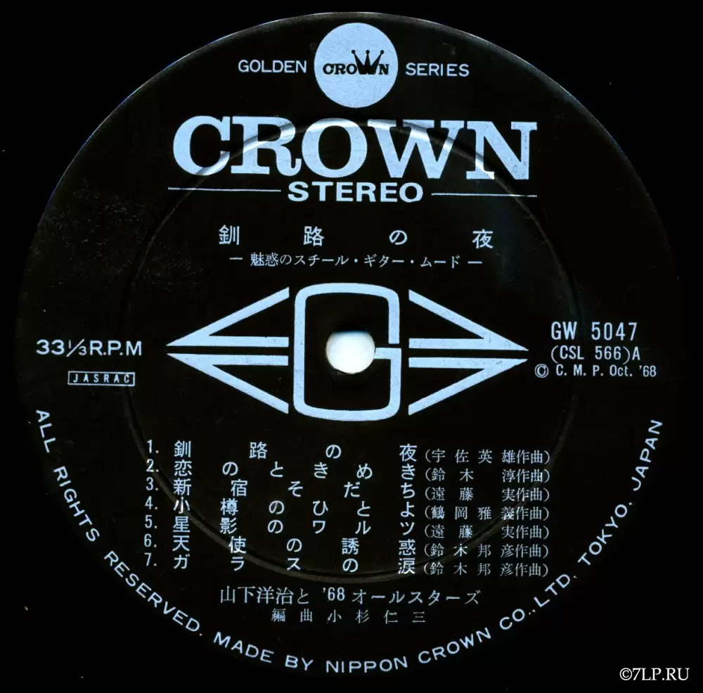 Пластинка была выпущена лейблом Nippon Crown в октябре 1968 года (копирайт Oct. '68 четко указан на яблоках диска) в рамках премиальной серии «Golden Crown Series». Каталожный номер — GW-5047.