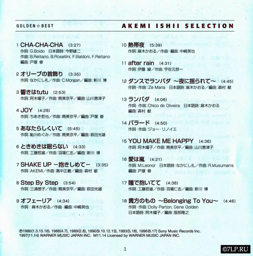 - Название: GOLDEN☆BEST Akemi Ishii Selection (ゴールデン☆ベスト 石井明美 セレクション).