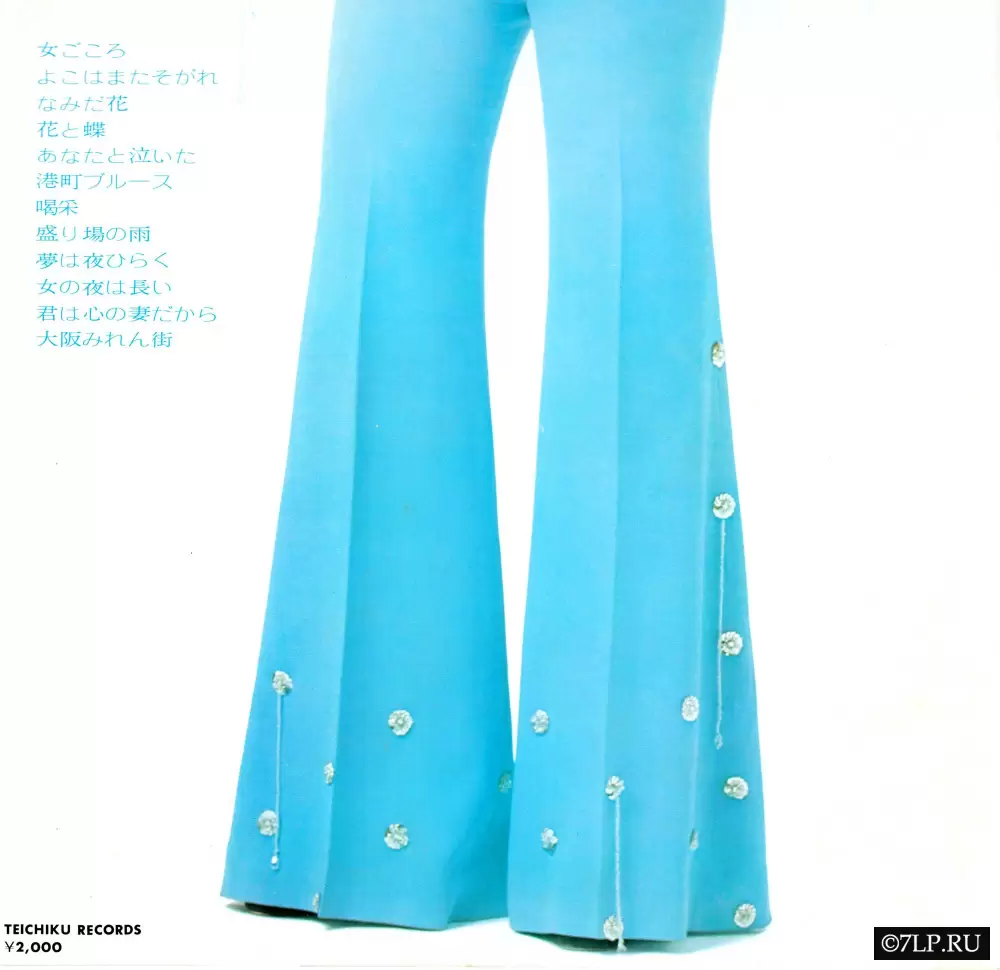 - Оформление (Важный факт): Обложка пластинки — это яркий памятник моде 1970-х годов. Аки Ясиро предстает в эффектном голубом костюме: топ, обильно расшитый бисером и пайетками, массивный золотой пояс и невероятно широкие брюки клеш (flared pants), украшенные вышивкой (им посвящена отдельная фотография на заднике конверта).