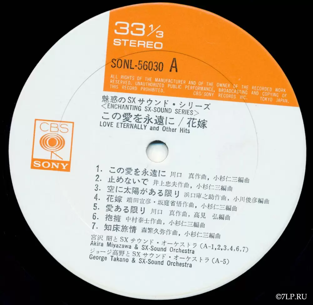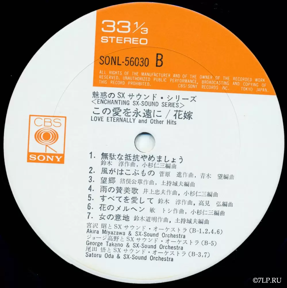 - Серия: Пластинка выпущена в рамках специализированной аудиофильской серии <ENCHANTING SX-SOUND SERIES> (魅惑のSXサウンド・シリーズ). Формат «SX-Sound» (часто маркировался как SX68) — это передовая на тот момент технология мастеринга и нарезки лакового диска, разработанная CBS/Sony для обеспечения кристально чистого, пространственного стереозвучания.