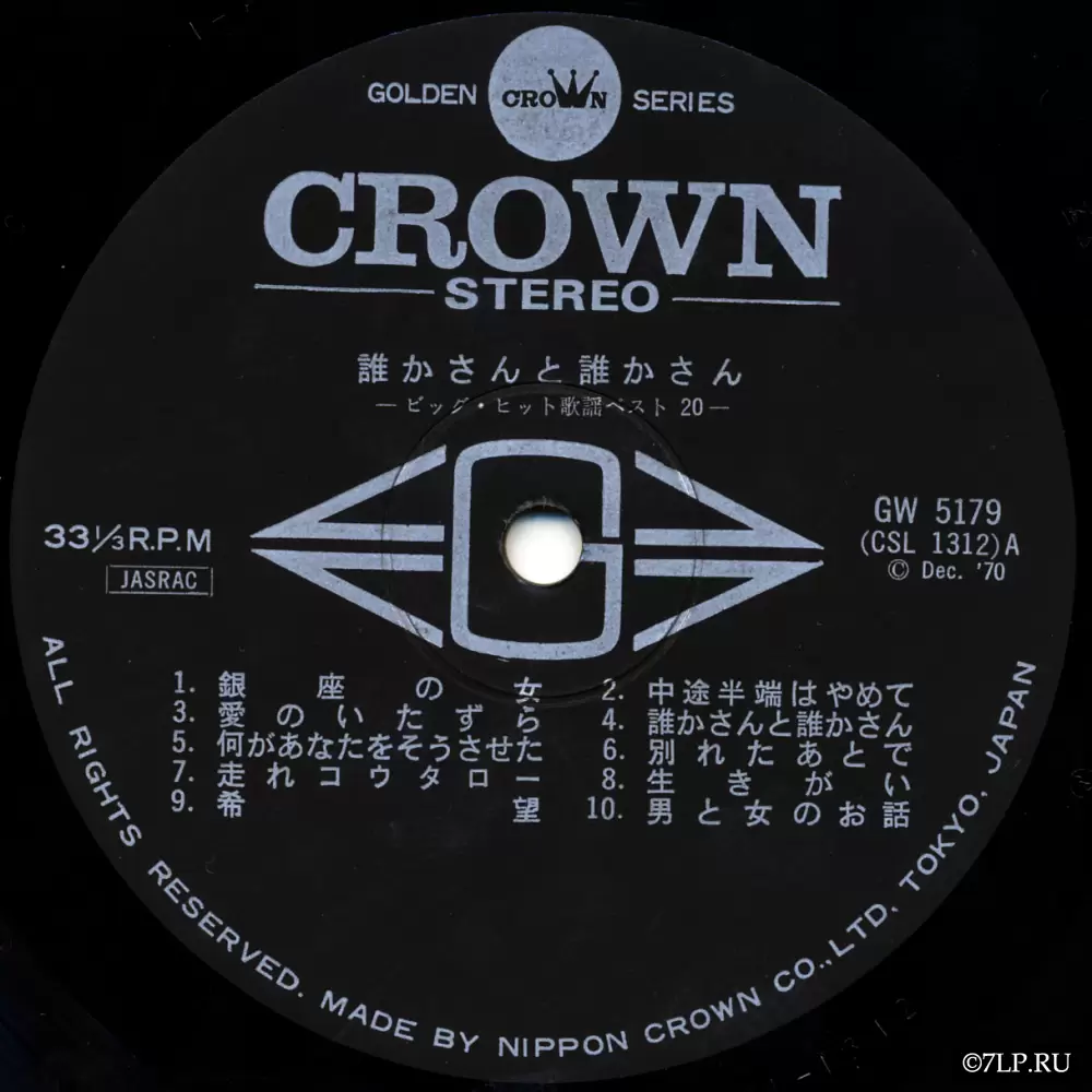 Перед нами яркий представитель японской виниловой индустрии рубежа 1960-х и 1970-х годов. Это пластинка из той же популярной серии лейбла Crown Records, что и предыдущий релиз (GW-5170), но с еще более интригующим оформлением и расширенным трек-листом.